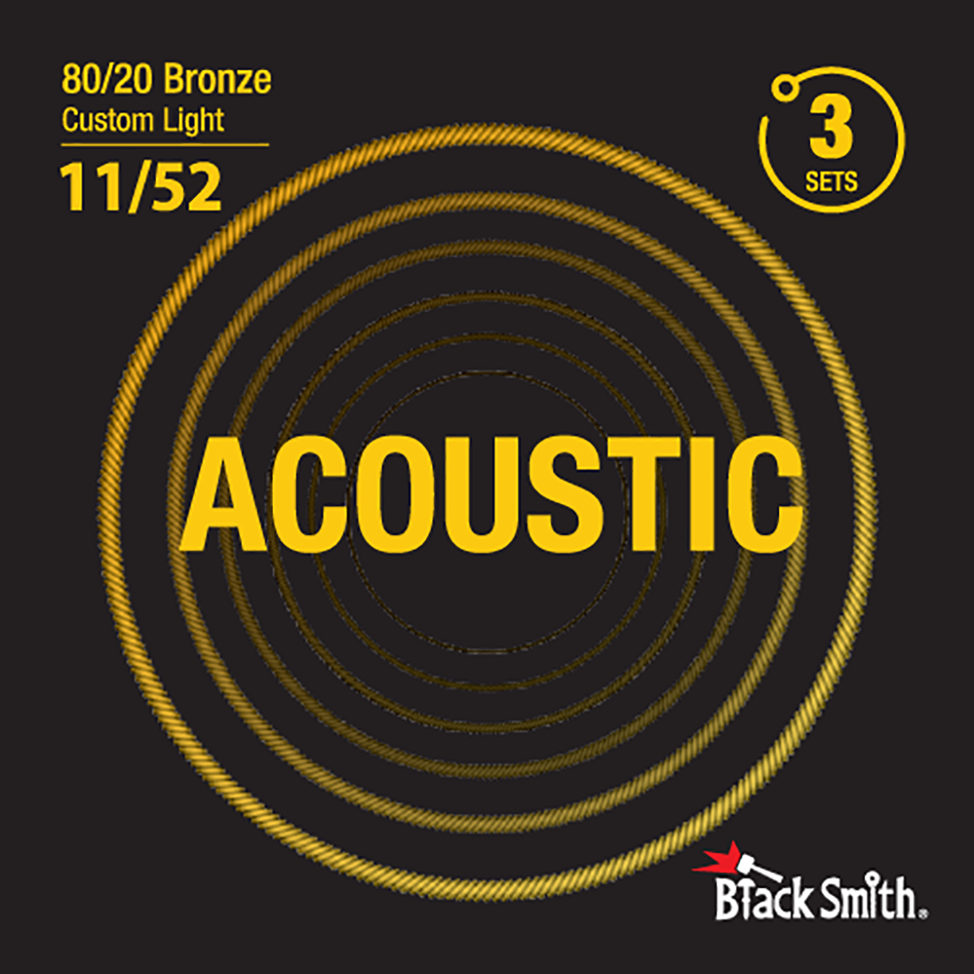 Black Smith BR-1152-3P Custom Light 80/20 Bronze Acoustic Guitar Strings - 3 Pack