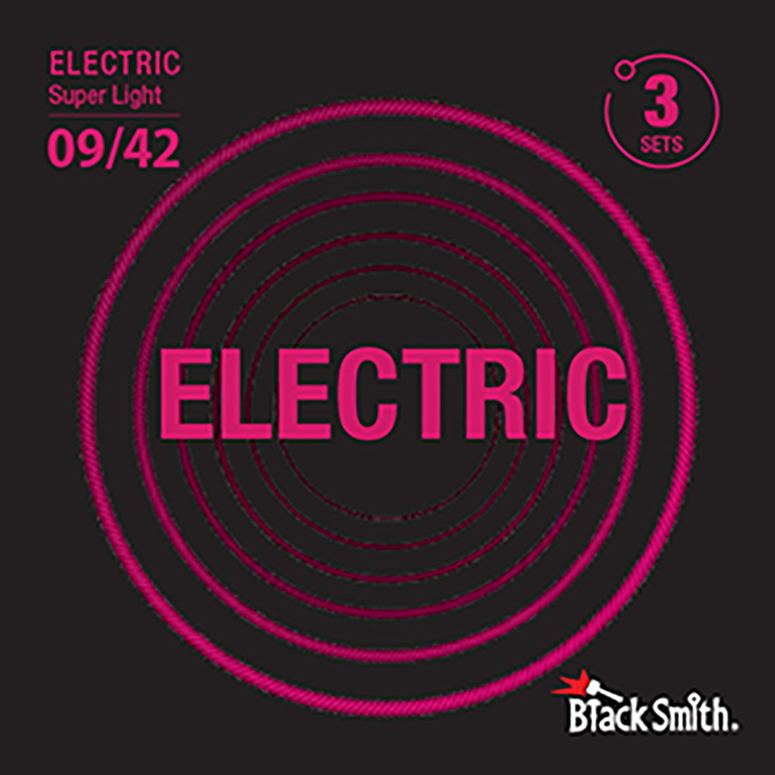 Black Smith NW-0942-3P Super Light 3 Pack Nickel Round Wound Electric Guitar Strings