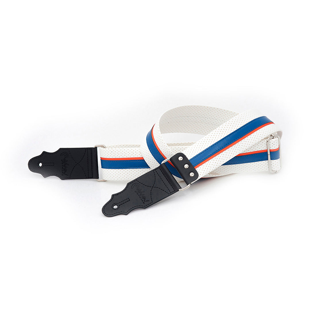 This guitar strap captures the spirit and colors of vintage American Autos, race cars, baseball tess and color culture of US, fits perfectly on acoustic guitars, electric guitars, and bass guitars.